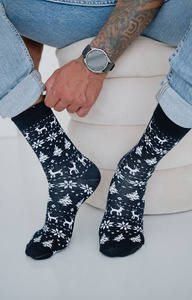 1290-031 Șosete de Crăciun pentru bărbați Milena, negre, 01 – Reni pe schiuri, bumbac