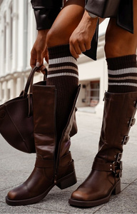 1610-001 Șosete până la genunchi pentru femei Milena, maro - cu dungi, confortabile și elegante