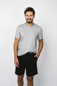Dallas Pijama cu mânecă scurtă pentru bărbați, pantaloni scurți Italian Fashion- melange/negru