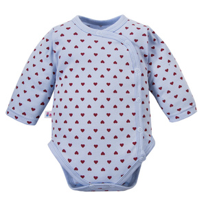 Body bebeluși Love Eevi albastru cu inimioare 100% bumbac, deschidere completă