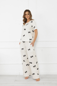 Pijama de damă Figaro - ecru, bumbac, mânecă scurtă + pantaloni lungi Italian Fashion