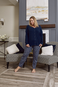 Song Pijama pentru femei cu mânecă lungă, pantaloni lungi Italian Fashion - albastru marin
