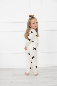 Pijama pentru fete Figaro - ecru, bumbac, mâneci lungi și pantaloni Italian Fashion