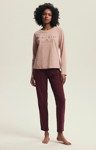 Set de pijamale pentru femei 43701 Delanie Henderson din bumbac roz prăfuit, cu mâneci lungi și pantaloni