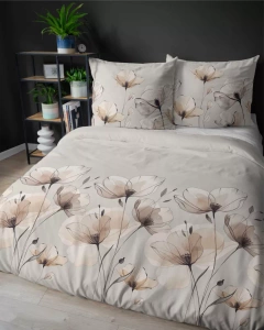 5501 A Lenjerie de pat bumbac bej deschis cu bujori crem Naturalis – Detexpol
