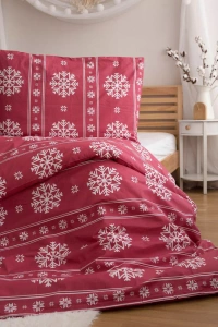 Set de lenjerie de pat de Crăciun Jerry Fabrics – Roșu cu fulgi de zăpadă albi, 100% bumbac