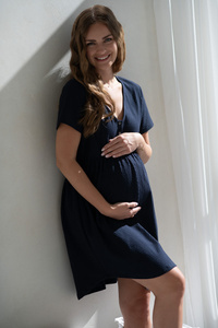 Halat de baie maternitate bleumarin Milk&Love – bumbac cu elastan, confortabil, mâneci 7/8