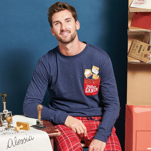 Pijamale Sorbetto pentru bărbați Gioew, albastre - Crăciun, în carouri, confortabile și elegante