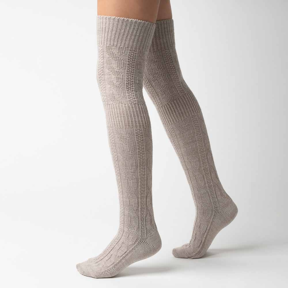 Ciepłe zakolanówki damskie ozdobione fantazyjnym wzorem.