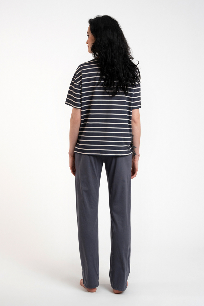 Betty Pijama de damă cu mânecă scurtă, pantaloni lungi Italian Fashion - imprimeu grafit/grafit