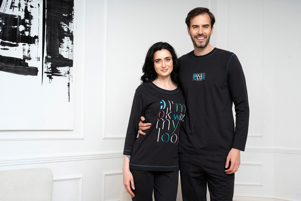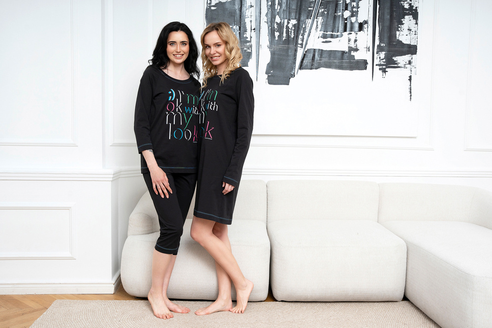 Pijamalele pentru femei cu pantaloni ¾ și bluză ¾ sunt ideale pentru nopțile mai calde. Materialul natural va menține pielea respirabilă și plăcută, în timp ce croiala dreaptă va asigura confort și libertate de mișcare. Hanoracul pijamalei din bumbac pentru femei este finisat cu un decolteu rotund și prezintă o grafică decorativă - o inscripție interesantă - în centru, realizată folosind o metodă de serigrafie foarte durabilă. Pantalonii de pijama, pe de altă parte, au buzunare funcționale. Pijamalele la modă pentru femei sunt disponibile în mărimile S până la XXL și în negru, cu litere colorate.