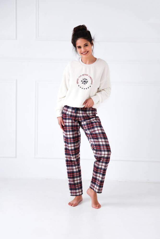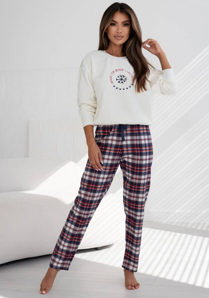 Pijama de damă din bumbac de calitate superioară. Tricou cu mânecă lungă, decolteu rotund.