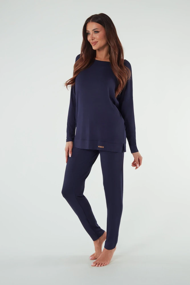Akord Ladies set cu mânecă lungă, pantaloni lungi Italian Fashion - albastru marin