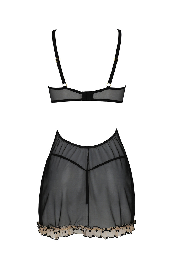Zmysłowa koszulka Martina to propozycja marki Passion. Delikatny tiul, otuli twoje ciało a otwarte miseczki uniosą biust i frywolnie go wyeksponują. Komplet dostępny w dwóch wersjach kolorystycznych - czerni i beżu.