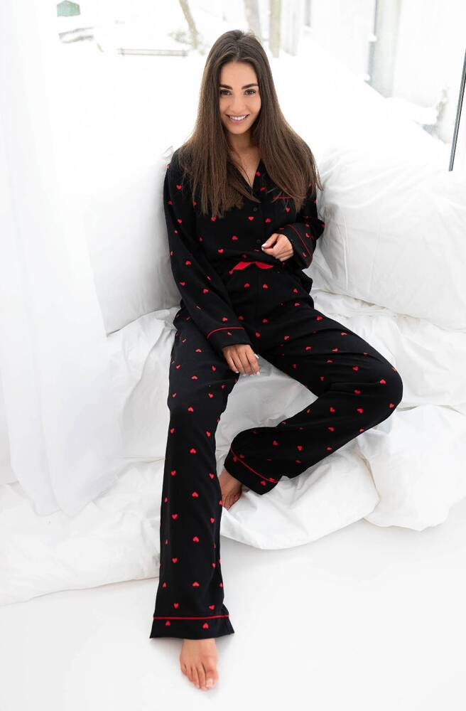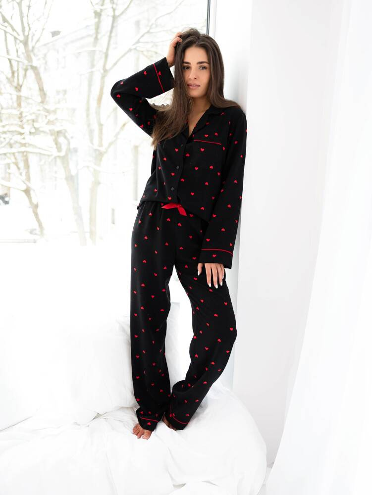 Pijama pentru femei în formă de inimă din viscoză de înaltă calitate. Bluză cu guler deschis.
