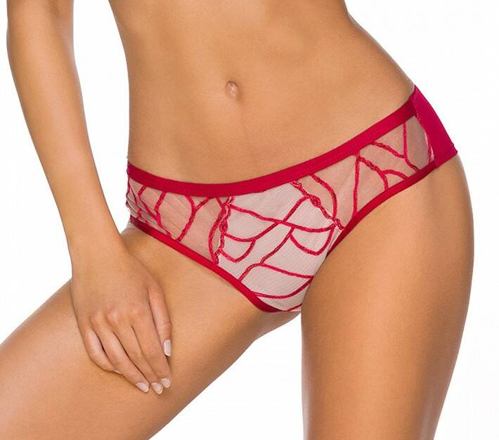 Chiloți clasici realizați dintr-o combinație de microfibre bej și roșu.