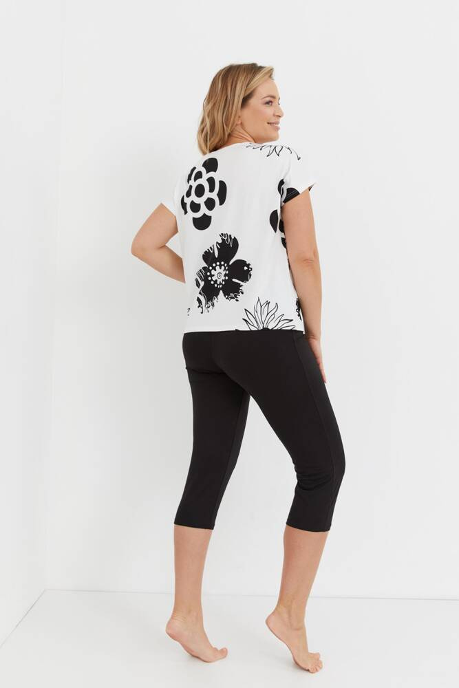 Pijama din două piese de la De lafense din viscoză de înaltă calitate. Perfect pentru un somn bun și un început de zi excelent cu prima cafea de dimineață. Tricou cu scurt manșon. Completat cu pantaloni 3/4.