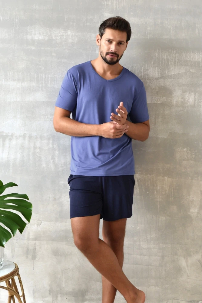 Dallas Pijama cu mânecă scurtă pentru bărbați, pantaloni scurți Italian Fashion- albastru