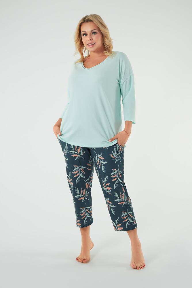 Julietta Pijama de damă mâneci 3/4, pantaloni 7/8 Modă italiană - fistic/print
