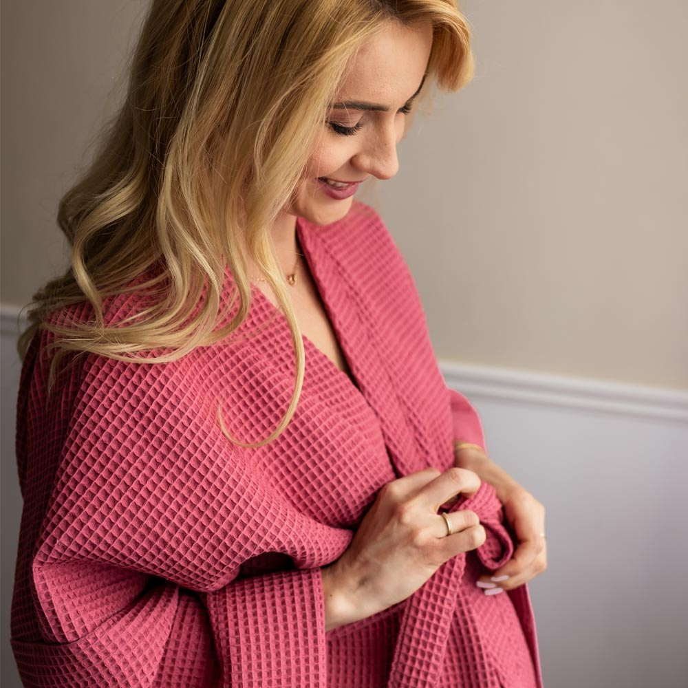 Szlafrok bawełniany wafel Eevi- malinowy