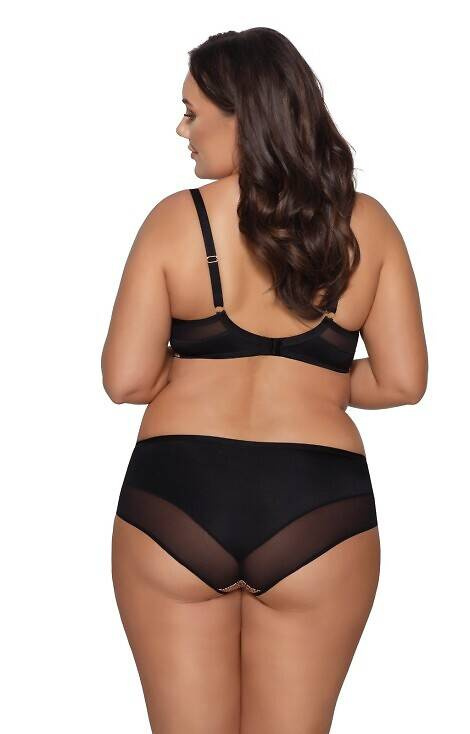Chiloți de damă în croială clasică completă. Față marcată cu animal print. Înapoi în tul.
