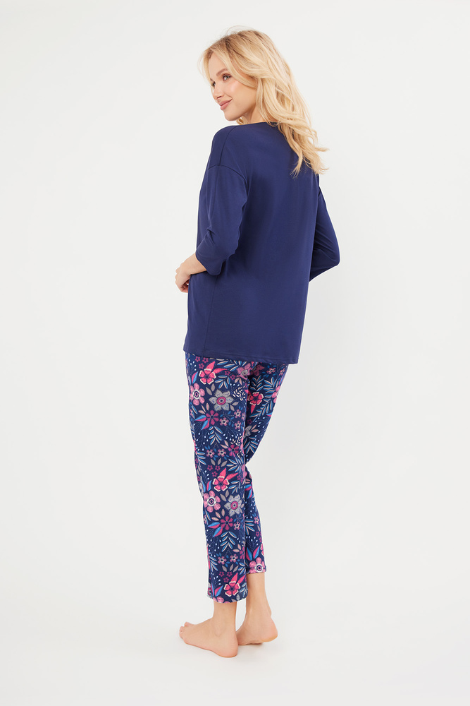 Folk Pijama de damă mâneci 3/4, pantaloni 7/8 Modă italiană - albastru marin/print