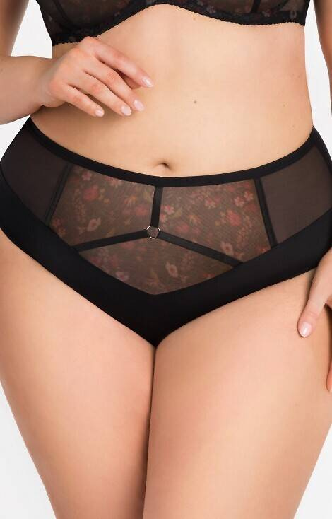 Tăietură deschisă care acoperă aproape toate fesele. Fabricat din tul elastic cu elemente de dantelă căptușit cu tul stabil. Spate din tul elastic cu un finisaj neted, astfel încât chiloții să nu se vadă sub haine. Picioare din bumbac prelungite pentru un confort sporit.