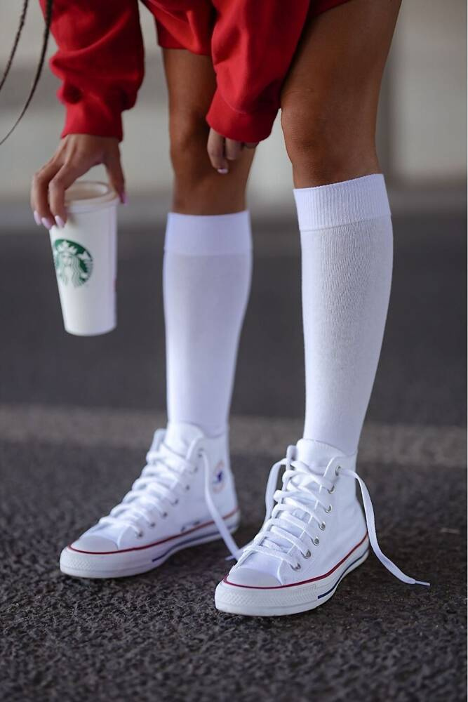 Materiał gładki, miły w dotyku, podkolanówki w jednolitym kolorze.