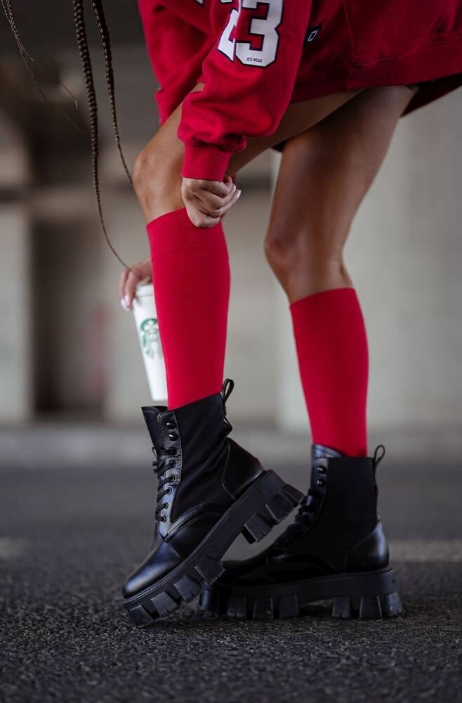 Materiał gładki, miły w dotyku, podkolanówki w jednolitym kolorze.