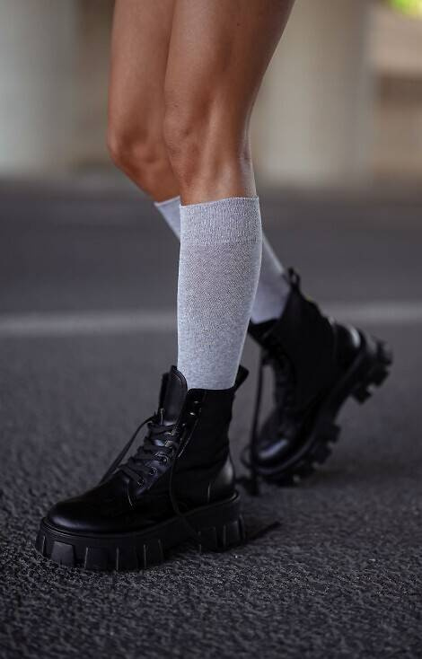 Materiał gładki, miły w dotyku, podkolanówki w jednolitym kolorze.