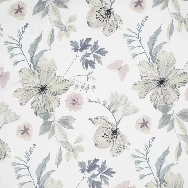 Spring 37 Flowers lenjerie de pat satin Euro perdele alb/verde
