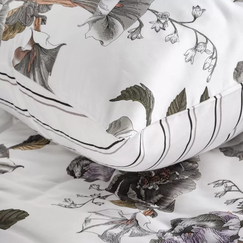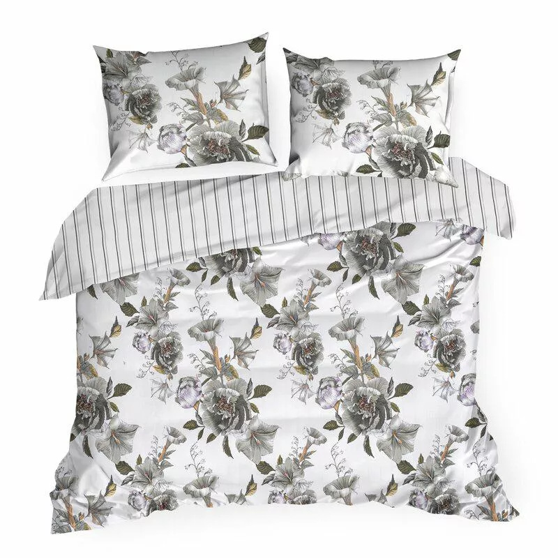 Spring 39 Flowers lenjerie de pat satin Euro perdele alb/gri