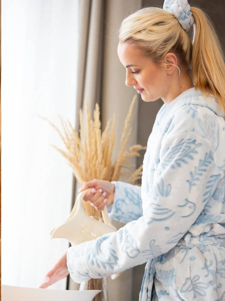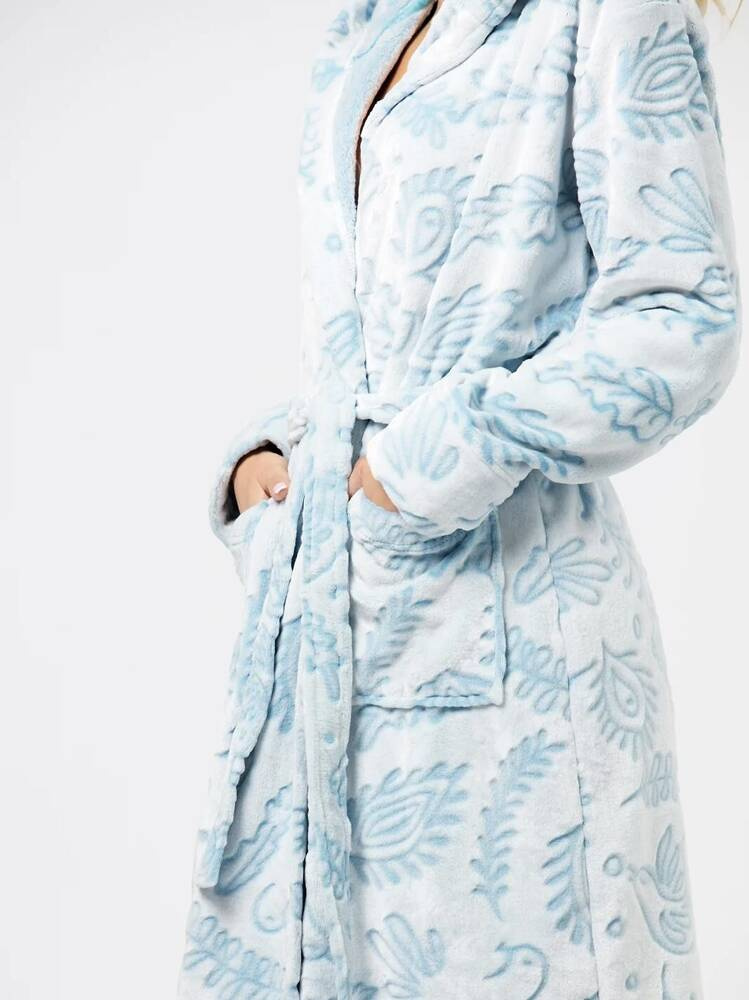 Halat de baie lung de dama din material moale, decorat cu un model delicat