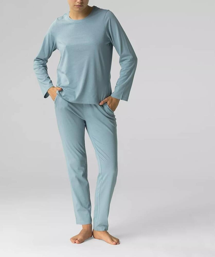 Pijamale de dama din bumbac moale, placut la atingere. Tricou cu maneca lunga, gat rotund. Setul include pantaloni lungi cu buzunare confortabile. Snur fără presiune în talie