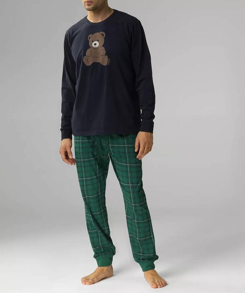 NMP-377 Pijamale bărbați cu mâneci lungi, Atlantic - bleumarin și verde
