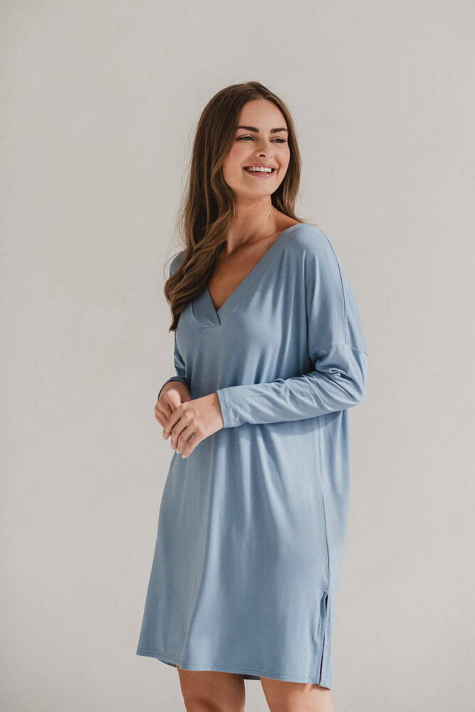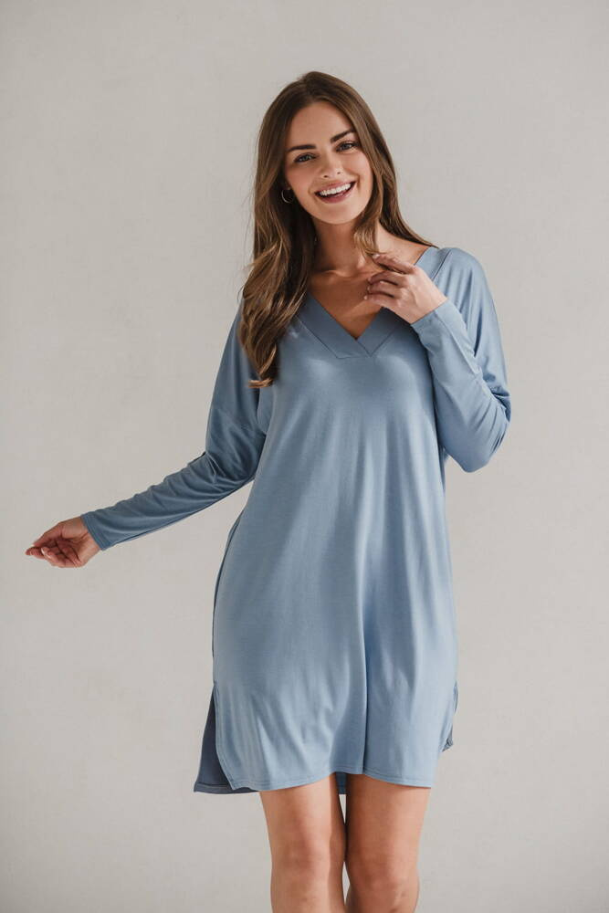 Cămașă de noapte pentru maternitate și alăptare din bambus Moon, mânecă lungă, Milk&Love, albastru