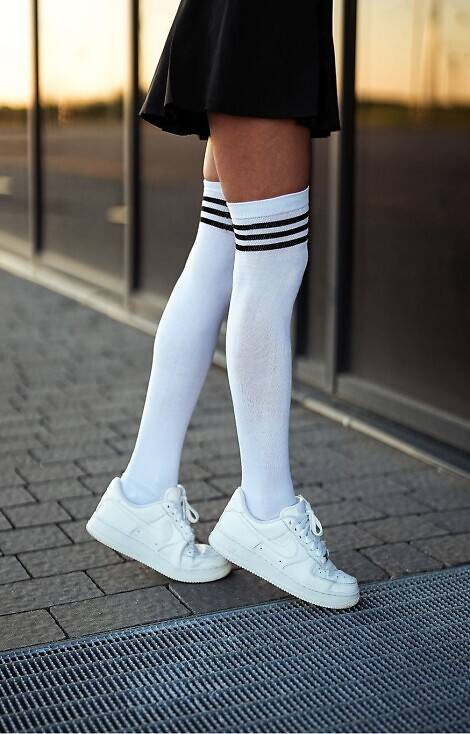 0293-002 Snur cu dungi Sosete de dama peste genunchi Milena - alb-negru