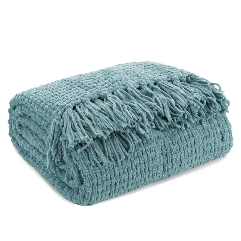 Suzi Cuvertură de pat țesută cu franjuri, eurodrape, mentă