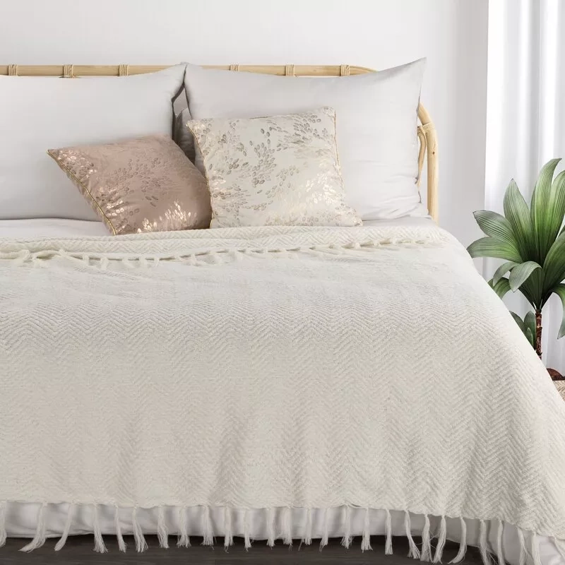 Milo Pătură cuvertură de pat cu franjuri Eurodraperii albe