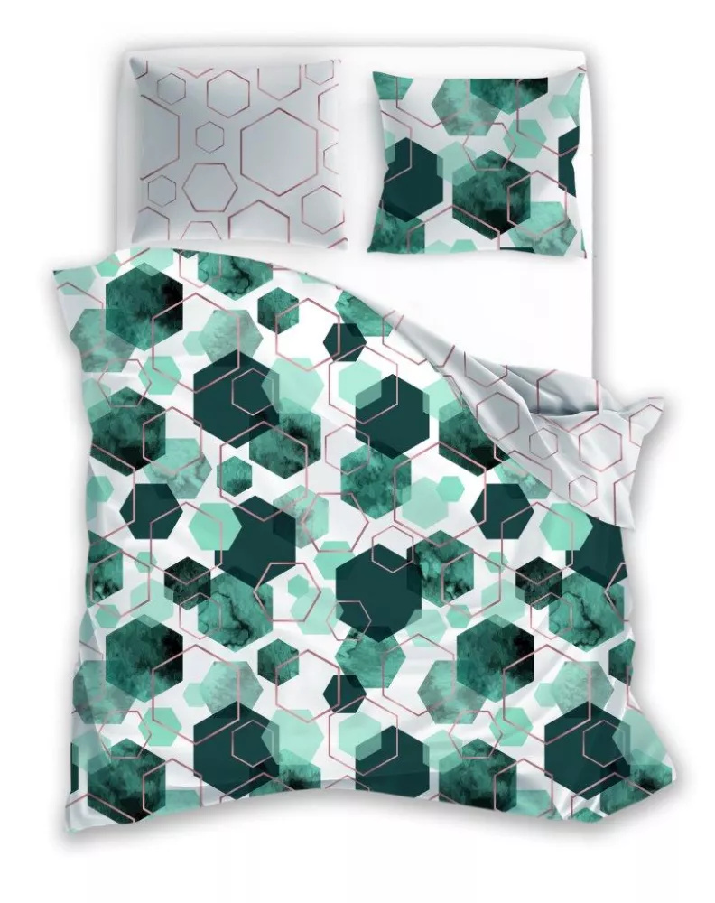 Milargo Verde 009 Lenjerie de pat din satin geometric Verde Faro