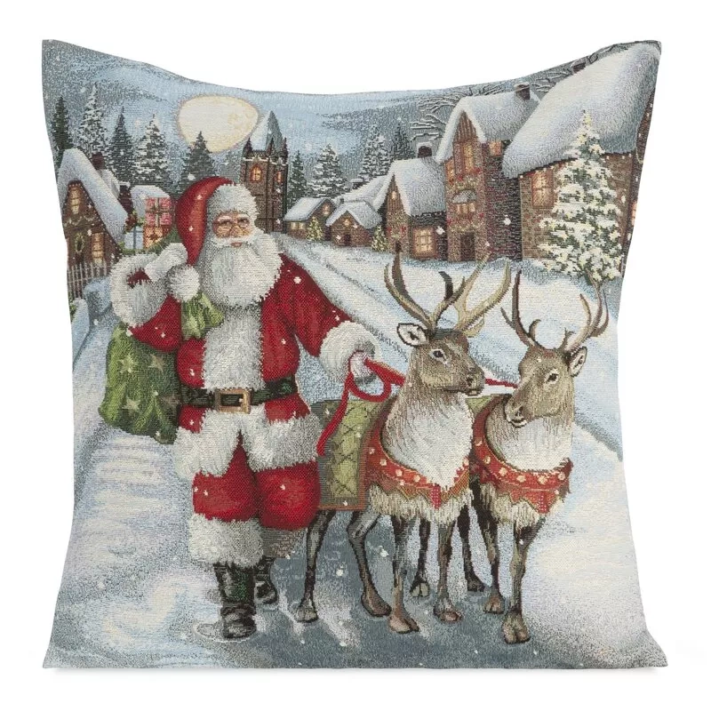 Chp 6130 Tapiserie Fata de perna de Craciun Mos Craciun Reni Europerdele gri