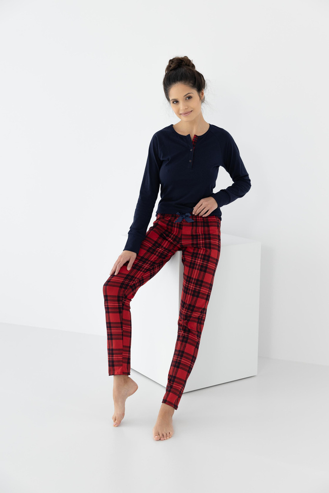 Pijamale pentru femei confecționate din bumbac de înaltă calitate. Tricou cu mânecă lungă și decolteu rotund.