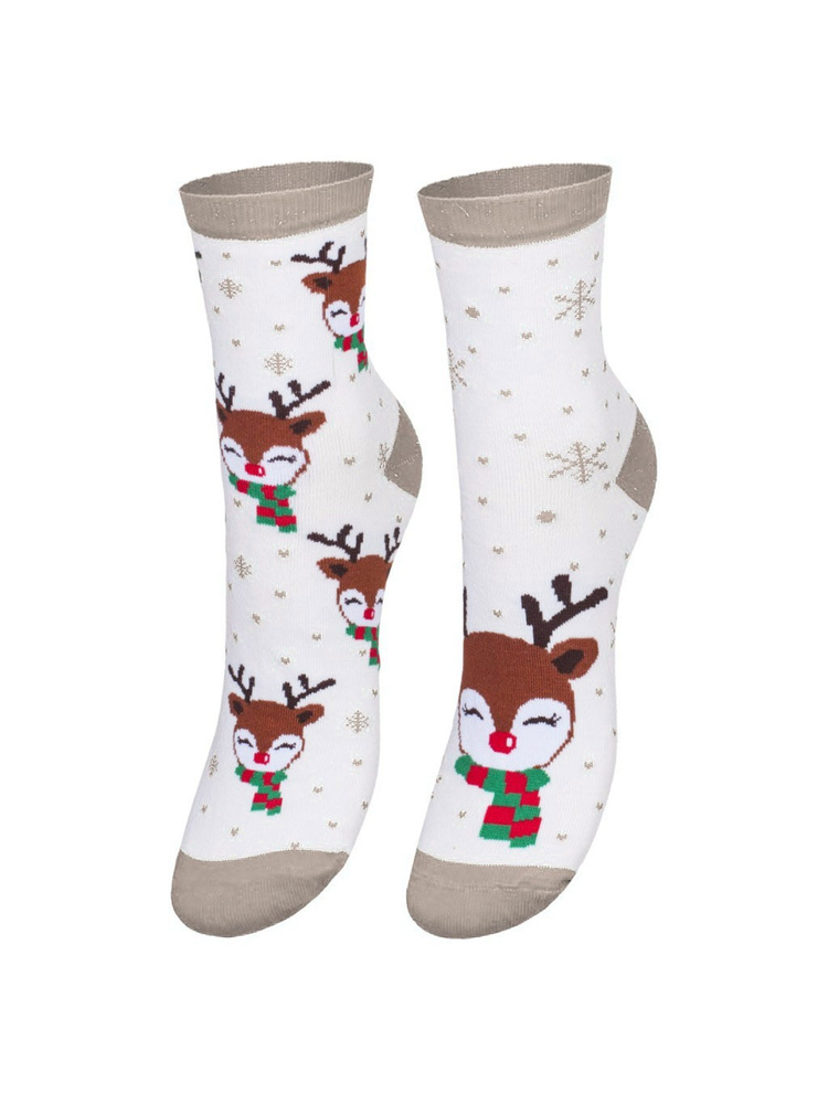 1283-015 Ren în eșarfă Sosete de damă de Crăciun Milena - bej ecru