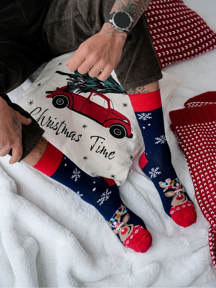 Șosete pentru bărbați cu motiv de Crăciun din bumbac de calitate superioară.