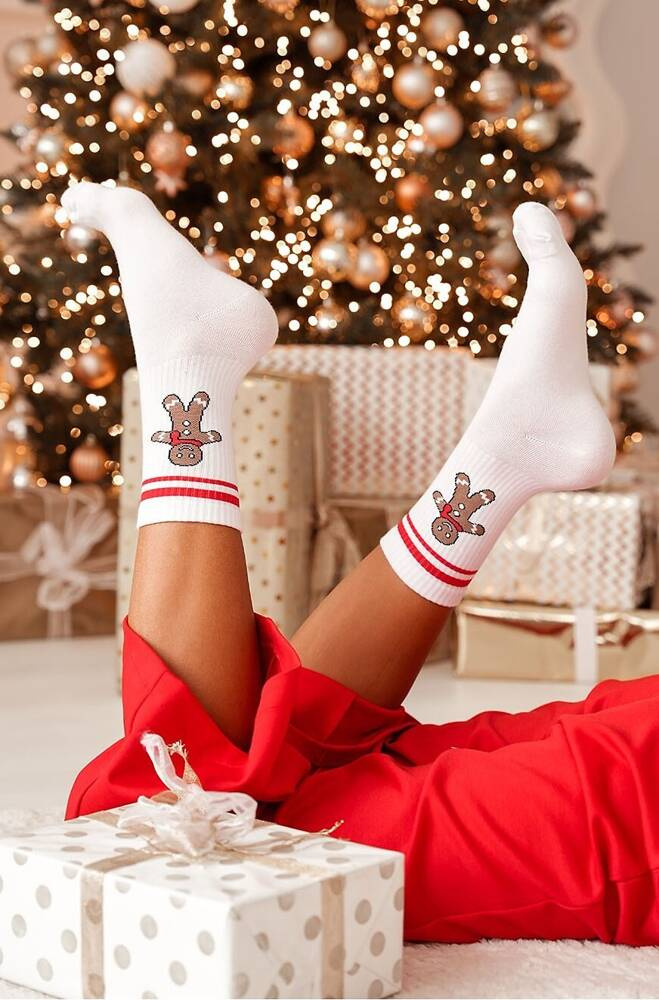 1283-026 Biscuit mare cu dungi Sosete dama Craciun Milena - alb
