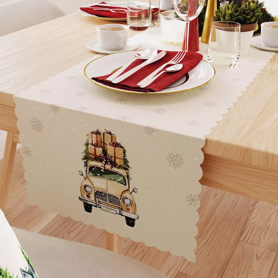 Fata de masa de Craciun este un decor estetic și grațios pentru fiecare masă. Se distinge prin designul la modă în prezent, calitatea înaltă a materiei prime și precizia manoperei. Cu siguranță va adăuga mult farmec oricărui interior și va face mai plăcute momentele petrecute împreună la întâlnirea de Crăciun. Va fi perfect ca decor de sine stătător, dar va arăta și elegant ca suprapunere de față de masă. Structura netedă și uniformă a produsului va sublinia subtil stilul și eleganța mesei de Crăciun, în această perioadă deosebit de fericită și de familie. Va fi un decor perfect și unic, subliniind atmosfera solemnă a Crăciunului.