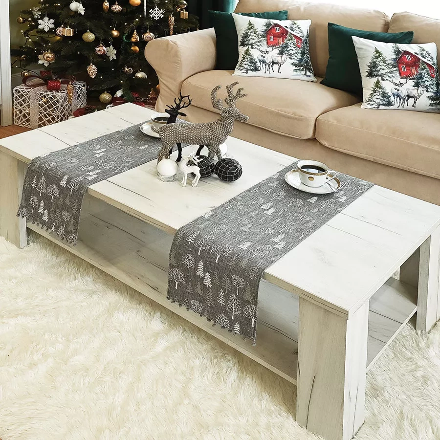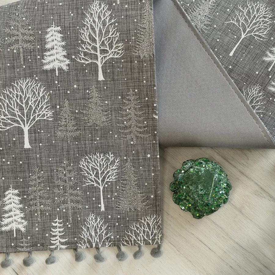 360000 Runner de masă de Crăciun magic de iarnă Marquisette gri
