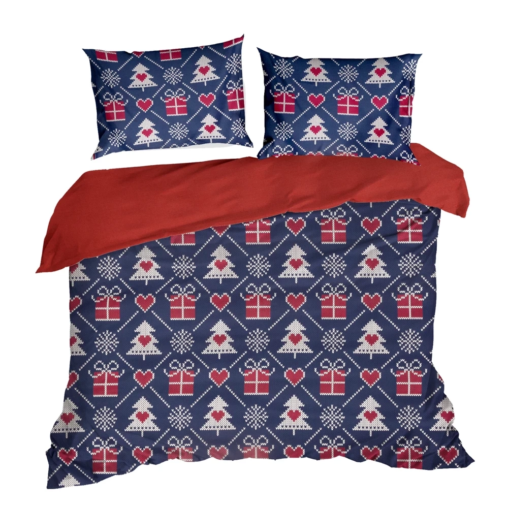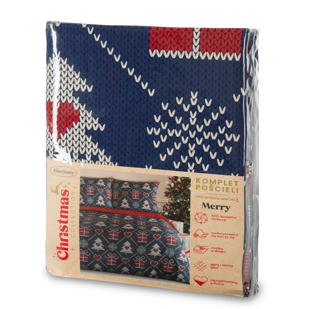 Lenjerie de pat pentru brad de Craciun Fericit din bumbac renforce Euro perdele - bleumarin