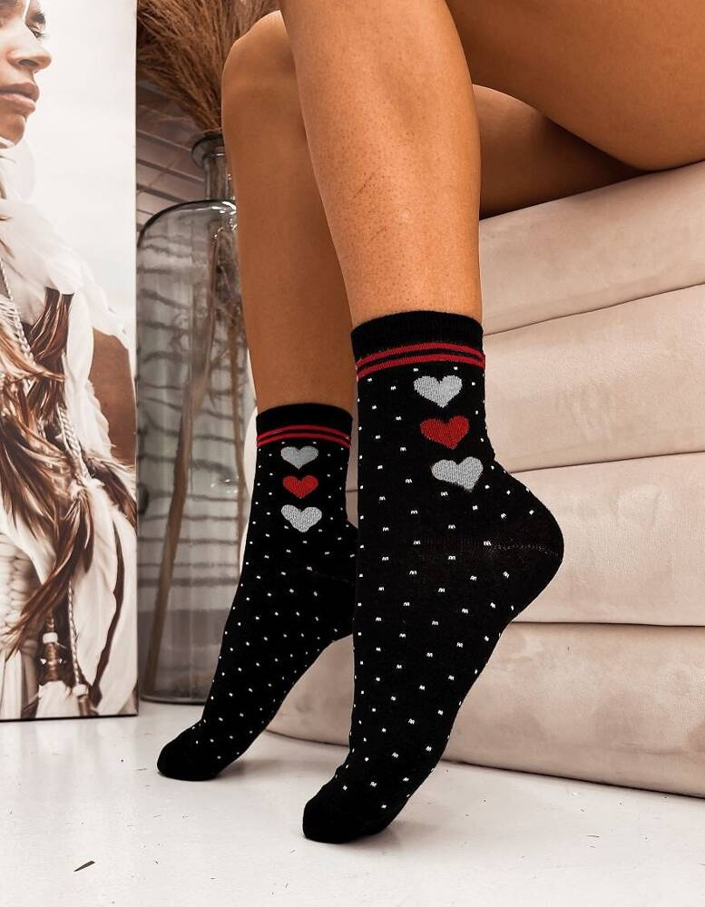 0200-011 Ciorapi dama Hearts Milena - negru-rosu 2