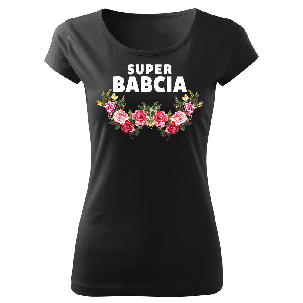 SKU D047 "Super bunica cu flori de ziua bunicii" Tricou Moocha dama, negru